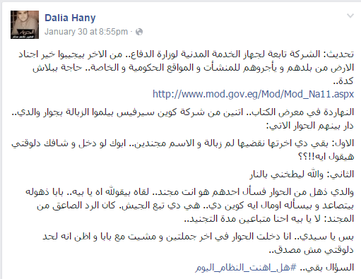 وكشفت أحد رواد موقع التواصل الاجتماعي، واقعة نقلها له والدها من معرض الكتاب إذ به يجد شابين يجمعان القمامة من داخل المعرض، ويكتشف خلال حديثهما مع بعض أنهما مجندان في الجيش.