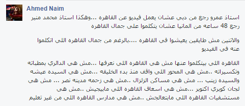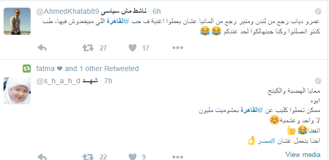سخرت رواد موقع التواصل الاجتماعي “فيس بوك” وموقع التدوين المصغر “تويتر” من كليب “القاهرة” الذي جمع لأول مرة الهضبة عمرو دياب مع الكينج محمد منير، إذ غنى منير مقطع “القاهرة ونيلها وناسها ومواويلها”، وهي من كلمات تامر حسين، ولحن أحمد حسين وتوزيع أسامة الهندى، وتتناول الأغنية عظمة العاصمة التاريخية لمصر.