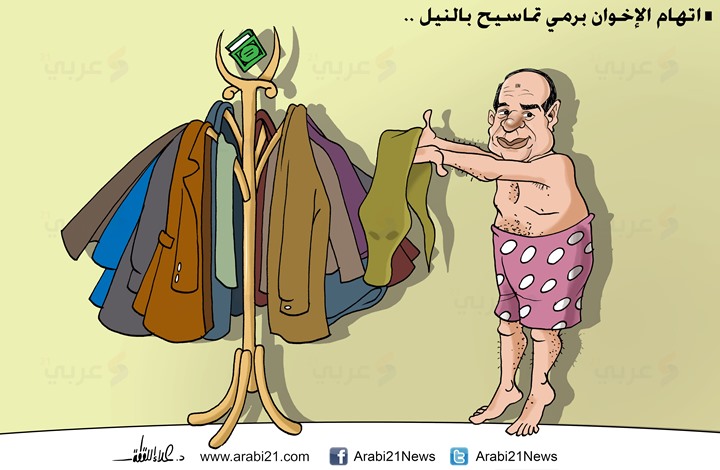 وعن اتهام الإخوان برمي تماسيح في النيل قدم موقع “عربي 21” هذا الرسم: