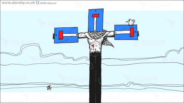 فنشر موقع “العربي” الجديد هذا الرسم واصفا الأحوال الفلسطينية: