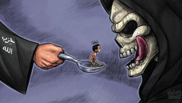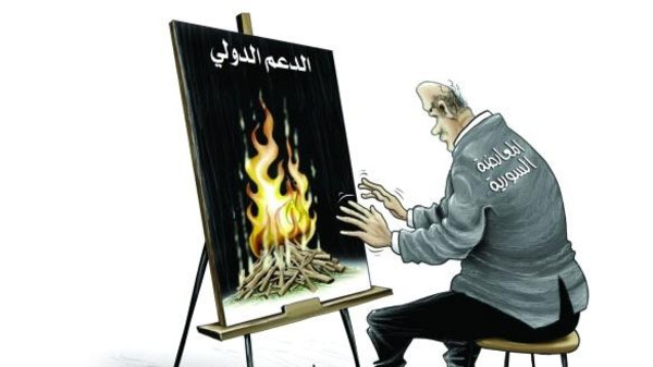 فنشر موقع “العربية” هذا الرسم ساخرا من الدعم الدولي للمعارضة السورية: