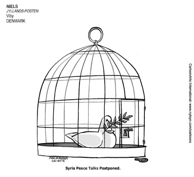 تناولت صحف ومواقع عالمية رسوما ساخرة من أحوال العالم، وسخر رسامو الكاريكاتير من أحوال سوريا في ظل مفاوضات جنيف، وصفقات إيران مع الغرب، وأيضا الدعم الدولي لسوريا.