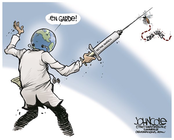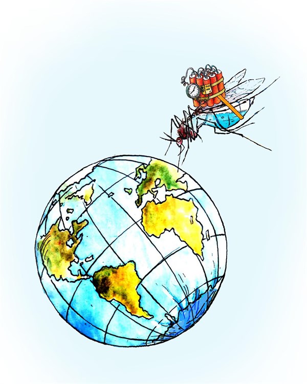 وقدم موقع “بولتيكال كارتونز” هذا الرسم عن هجوم فيروس زيكا على العالم: