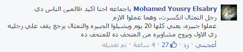 -Mohamed : ياجماعه احنا اكيد ظالمين الناس دي ، رجل التمثال اتكسرت، وهما عملوا اللازم ، عملوا جبيره، يعني كلها 20 يوم ويشيلوا الجبيره والتمثال يرجع يقف علي رجليه زي الاول ويروح مشاويره من المتحف ده للمتحف ده