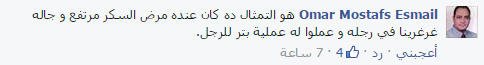 – omer : هو التمثال ده كان عنده مرض السكر مرتفع وجاله غرغرينا في رجله و عملوا له عملية بتر للرجل