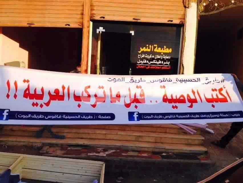 وقام عدد من شباب مركزي الحسينية وفاقوس بإنشاء حملة عبر مواقع التواصل الاجتماعي للمطالبة بتوسيع الطريق للحد من الحوادث التي تقع عليه، كما قاموا بتعليق عدد من اللافتات على الطريق والتي كتبوا عليها “اكتب الوصية.. قبل ما تركب العربية”.