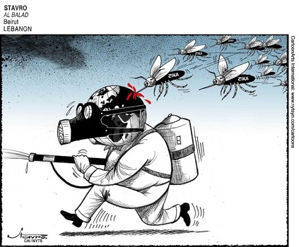 ونشر موقع “بولتيكال كارتونز” هذا الرسم عن انتشار فيروس زيكا في العالم: