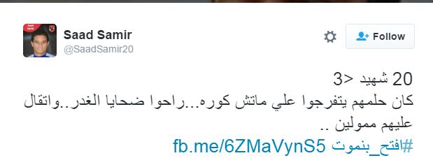 Saad Samir-: “كان حلمهم يتفرجوا على ماتش كورة.. راحوا ضحايا الغدر.. واتقال عليهم ممولين”.