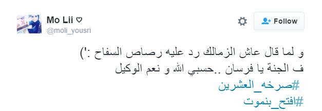 Mo Lii-: “ولما قال عاش الزمالك رد عليه رصاص السفاح.. في الجنة يا فرسان.. حسبي الله ونعم الوكيل”.