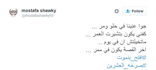 mostafa shawky-: “جوا عنينا في حلو ومر.. كفني يكون بتشيرت العمر.. ماتخيلتش إن في يوم.. آخر القصة يكون في ممر”.