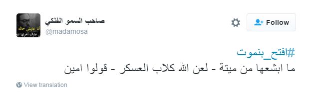 – صاحب السمو الفلكي: “ما أبشعها من ميتة- لعن الله كلاب العسكر- قولوا آمين”.