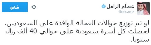 وعلق المؤسس والمدير التنفيذي لشركة رمال السعودية، والكاتب الاقتصادي السعودي، عصام الزامل، قائلًا: