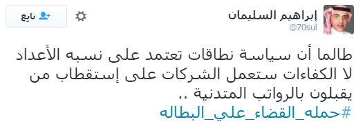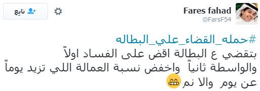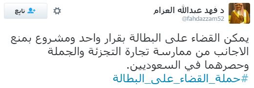 دشن السعوديون عددا من الهاشتاجات ضد وجود العمالة الوافدة في المملكة، وأخرى ضد ارتفاع أعداد العاطلين، وعلى الرغم من النمو الاقتصادي الملحوظ الذي حققته السعودية في السنوات الأربع الماضية فإن كل الجهود الحكومية لم تنجح في حل مشكلة البطالة، فزادت نسبة العاطلين إلى 11.8% عام 2014 مقارنة بنحو 11.7% عام 2013، وفقًا لمصلحة الإحصاءات والمعلومات “حكومية”.
