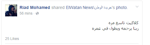 وقال رياض محمد: “كلاكيت تاسع مرة، ربنا يرحمه ويطول في عمره”.