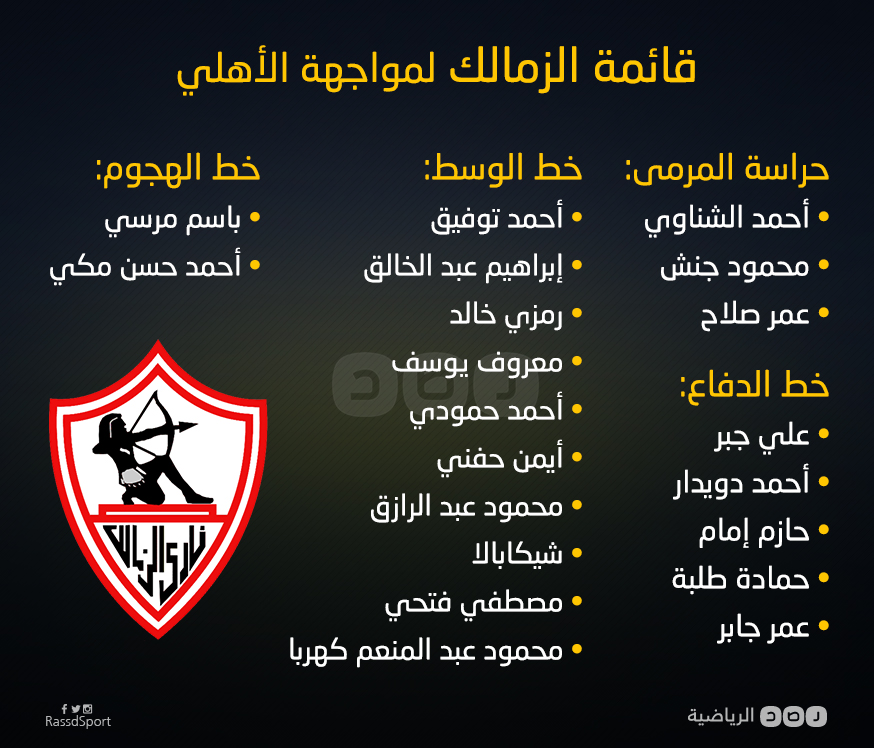 إنفوجرافيك.. تعرَّف على قائمة الزمالك في مباراة القمة