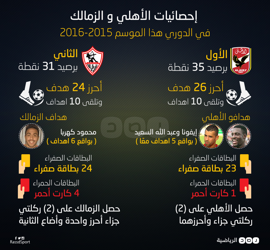 وتقدم “رصد” لمتابعيها إحصائية بأبرز الأرقام التي حققها الفريقان حتى الآن في الدوري المصري، من خلال الإنفوجرافيك التالي: