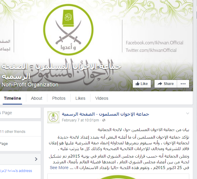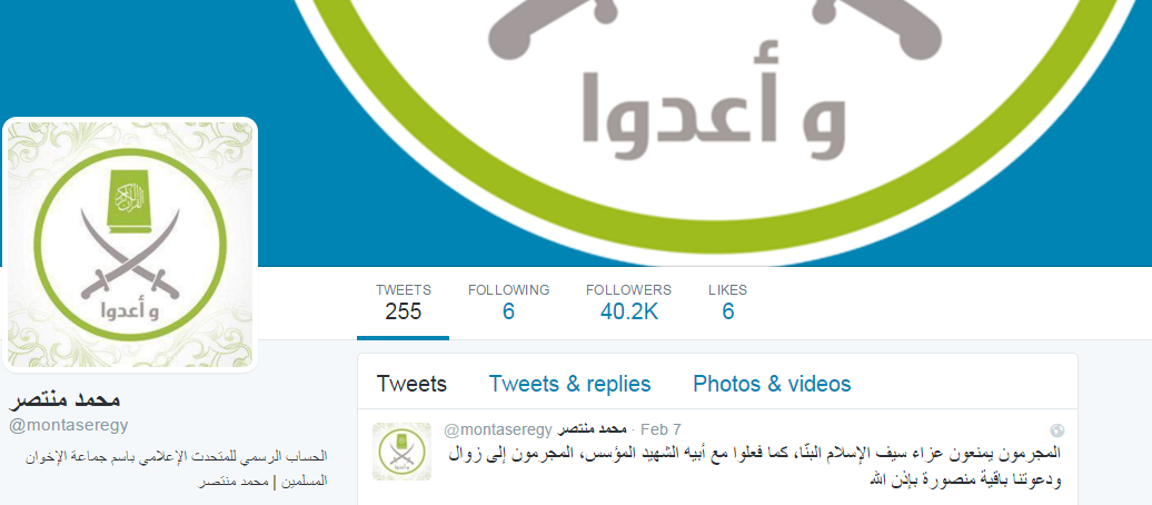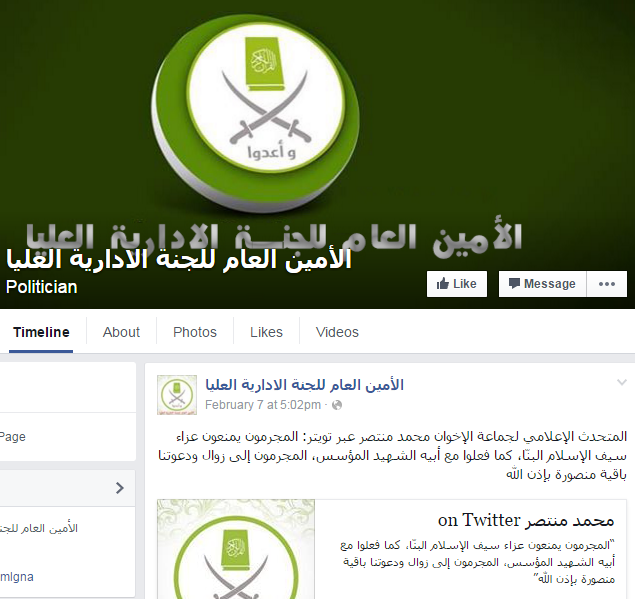 كما أن هناك صفحتان تحت مسمى “الأمين العام للجنة الإدارية العليا” للإخوان المسلمين تعترف بمحمد منتصر كمتحدث إعلامي للإخوان.