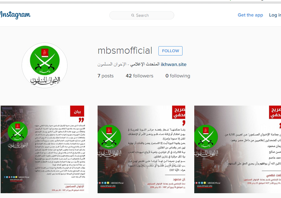 وهناك 6 صفحات للمتحدث الإعلامي الدكتور طلعت فهمي من بينهما الصفحة الرسمية للجماعة على تويتر وفيس بوك.
