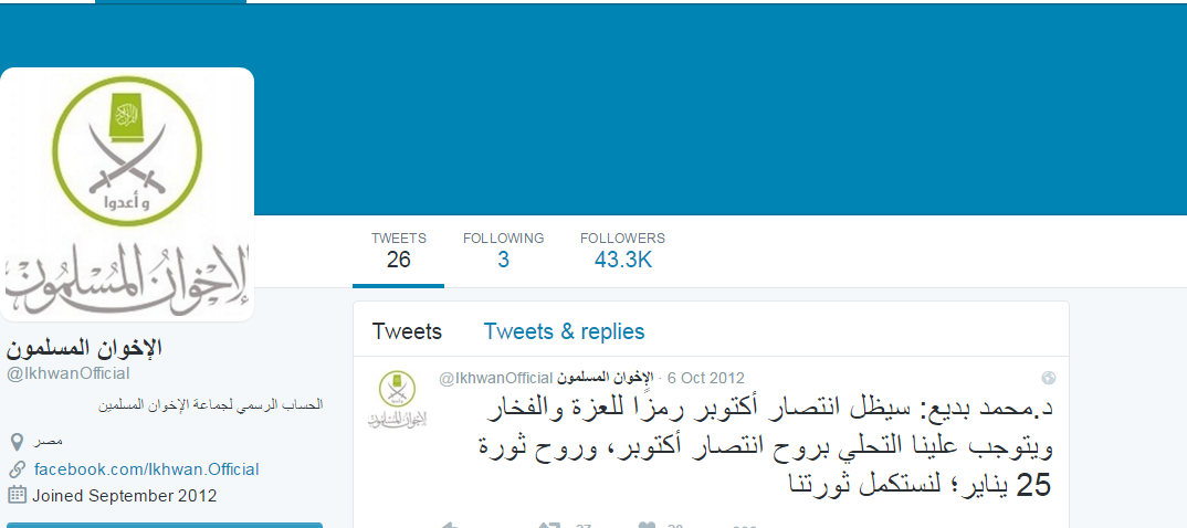 منذ ثورة 25 يناير وحتى اليوم، انجرفت جماعة الإخوان المسلمين نحو التفاعل مع رواد مواقع التواصل الاجتماعي، وبعد موجة الإطاحة بنظام الإخوان تعددت تلك الصفحات وفقا للمعطيات الجديدة حتى وصىلت إلى 14 صفحة، إذ  أظهرت  أن هناك 7 صفحات ظهر دعمها لـ “محمد منتصر”، بينما “طلعت فهمي” المتحدث الاخر تتبعه 6 صفحات من بينهم الصفحة الرسمية للجماعة على “فيس بوك” و”وتويتر”، أما صفحة حزب الحرية والعدالة الذراع السياسي للإخوان فبدت محايدة بين الطرفين.