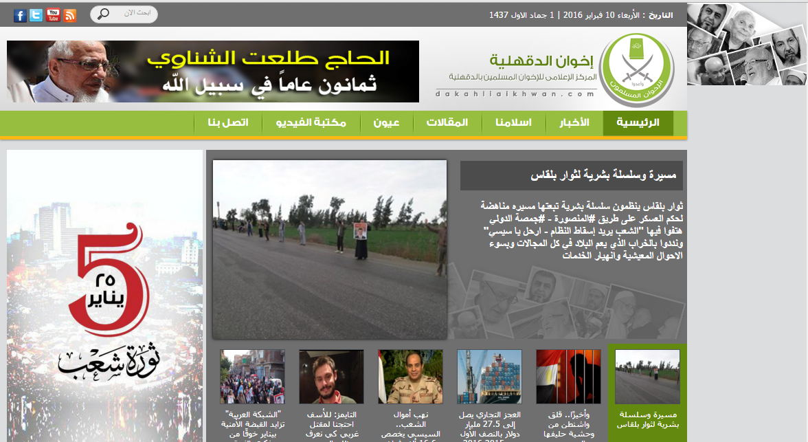 يواصل أعضاء جماعة الإخوان المسلمين بث الأخبار المناهضة للنظام، على عدة مواقع عبر الإنترنت، فهي السبيل الوحيد لهم الآن، بعد منع صدور جريدة الحرية والعدالة الناطقة باسم الحزب والتي انطلفت بعد عام من الثورة، بينما هناك مواقع إخبارية أخرى تدعم قضيتهم المعارضة للحكم في مصر.
