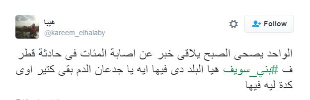 هيبا:الواحد يصحى الصبح يلاقي خبر عن إصابة المئات في حادثة قطر في #بني_سويف، هيا البلد دى فيها ايه يا جدعان الدم بقى كتير أوي كدة ليه فيها.