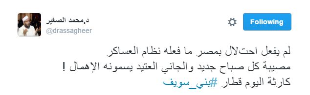 وندد المغردون بالحادث، معربين عن أسفهم من تكرار تلك الحوادث في مصر، مؤكدين أن الأهمال هو السبب فيها، مطالبين الحكومة بصرف تعويضات للمصابين كما فعلت مع ضحايا الطائرة الروسية، وكان من بين التعليقات؛