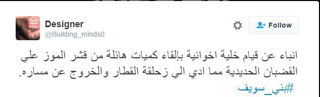 Designer:أنباء عن قيام خلية إخوانية بإلقاء كميات هائلة من قشر الموز علي القضبان الحديدية مما أدى إلى زحلقة القطار والخروج عن مساره.