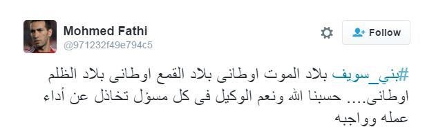 Mohmed Fathi: بلاد الموت أوطانى بلاد القمع أوطاني بلاد الظلم أوطاني…. حسبنا الله ونعم الوكيل في كل مسؤول تخاذل عن أداء عمله وواجبه