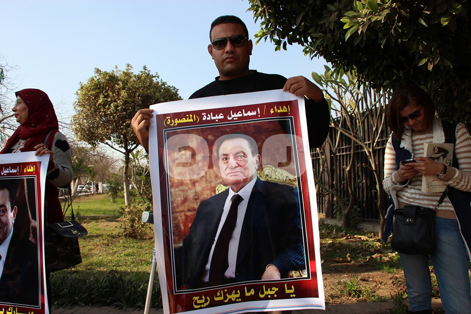 احتفل عدد من أنصار المخلوع حسني مبارك، اليوم الخميس، أمام المستشفى العسكري بالمعادي، لإحياء الذكرى الخامسة لتنحيه عن الحكم، في أعقاب ثورة الخامس والعشرين من يناير عام 2011