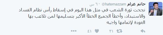 وطالب “عزام” عبر حسابه بموقع التواصل الاجتماعي “تويتر” بضرورة العودة إلى استراجع الثورة.