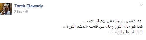 كما تآسى المحامي طارق الوادي على أوضاع الثوار وحال من انتفضت الثورة ضدهم.