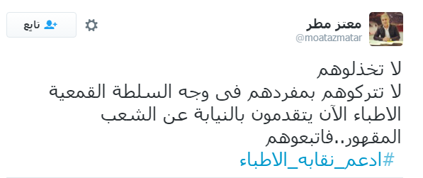 وحيا الإعلامي معتز مطر من ثاروا من الاطباء ضد بطش وظلم رجال الشرطة من أجل الكرامة.