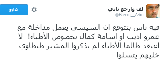 وتهكم عبر حسابه بموقع التواصل الاجتماعي “تويتر” على عدم تدخل عبد الفتاح السيسي بالقضية ولو بمداخلة هاتفية مع الإعلامي عمرو أديب، على حد قوله.