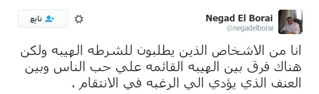وأوضح خلال تغريدة له بموقع التواصل الاجتماعي “تويتر” الفرق بين هيبة الشرطة والعنف الذي يؤدي إلى الرغبة في الانتقام.