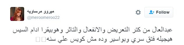 ميروو مرساويه: “عبدالعال من كتر التعريض والانفعال والتأثر وهو بيقرا أدام السيسي هيجيله فتق سري وبواسير وده مش كويس على سنه”.