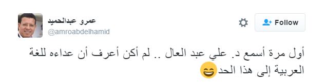 عمرو عبدالحميد: “أول مرة أسمع د. علي عبدالعال.. لم أكن أعرف أن عداءه للغة العربية إلى هذا الحد”.