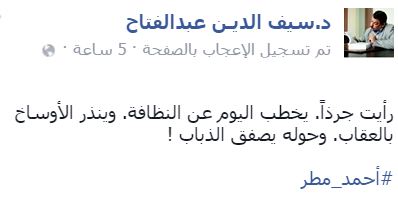 استحضر الدكتور سيف عبد الفتاح، أستاذ العلوم السياسية، قصيدة قصيرة من لافتات الشاعر أحمد مطر بعنوان “خطاب تاريخي”، ونشرها على صفحته الشخصية أثناء خطاب عبد الفتاح السيسي اليوم أمام مجلس النواب.