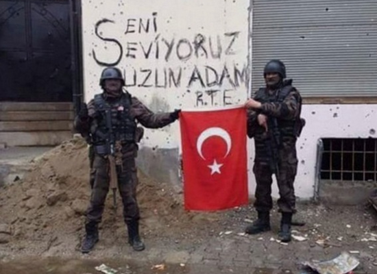 وأفادت وسائل إعلام، أن أردوغان قال -خلال لقائه بعدد من المسؤولين الأتراك في القصر الرئاسي بأنقرة- إن الصورة وصلته من القوات الخاصة، وتتضمن صورة لعنصرين منها يحملان العلم التركي وسلاحيهما وخلفهما حائط به ثقوب من أثر المعارك كتب عليه “سر أيها الرجل الطويل فنحن نحبك”.