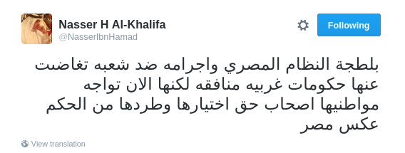 وأضاف “بلطجة النظام المصري وإجرامه ضد شعبه تغاضت عنها حكومات غربية منافقة، لكنها الآن تواجه مواطنيها أصحاب حق اختيارها وطردها من الحكم عكس مصر”.
