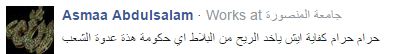 Asmaa Abdulsalam –: “حرام حرام كفاية ايش ياخد الريح من البلاط أي حكومة هذة عدوة الشعب”.