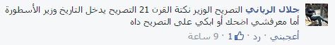 – جلال: “التصريح الوزير نكتة القرن 21، التصريح يدخل التاريخ، وزير الأسطورة أنا معرفشي اضحك أو ابكي على التصريح ده”.