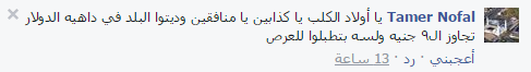 – tamer: “يا ….. يا كذابين يا منافقين وديتوا البلد في داهيه الدولار تجاوز ال٩ جنيه ولسه بتطبلوا….”.