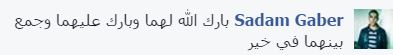 Sadam Gaber: “بارك الله لهما وبارك عليهما وجمع بينهما في خير”.