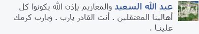عبدالله السعيد: “والمعازيم بإذن الله يكونوا كل أهالينا المعتقلين.. أنت القادر يا رب”.