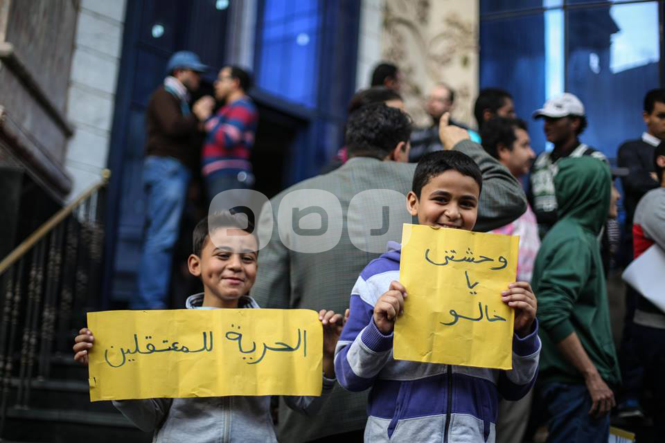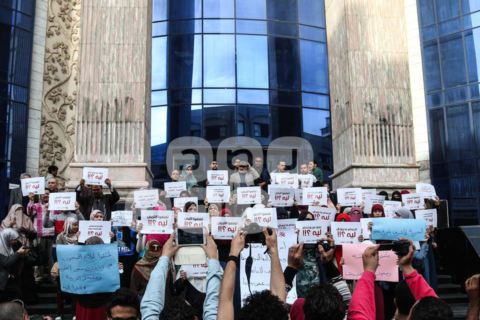 بالصور.. وقفة احتجاجية لأهالي معتقلي “العقرب” على سلم نقابة الصحفيين