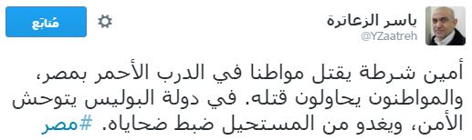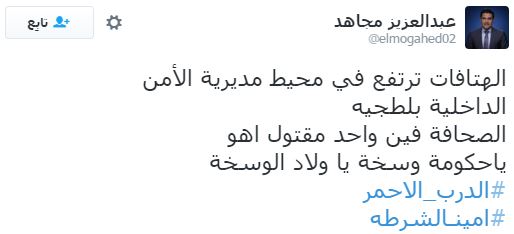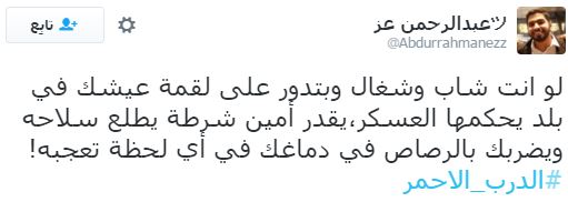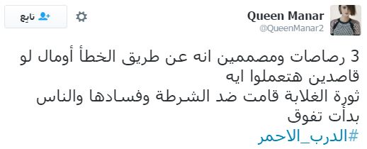 دشن رواد مواقع التواصل الاجتماعي “تويتر” هاشتاجًا باسم “الدرب الأحمر” تعليقًا على حادث مقتل مواطن برصاص أمين شرطة، أمام مديرية أمن القاهرة، حيث قام المواطنون بقطع الطريق أمام مستشفى أحمد ماهر بالقرب من مديرية أمن القاهرة، وهتفوا ضد الداخلية والحكومة مرددين هتافات “الداخلية بلطجية”.