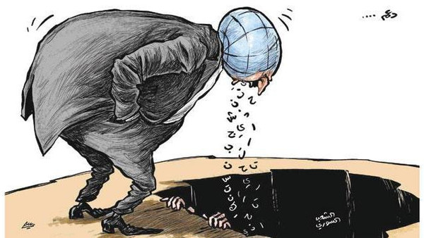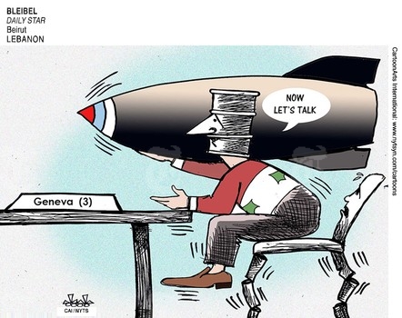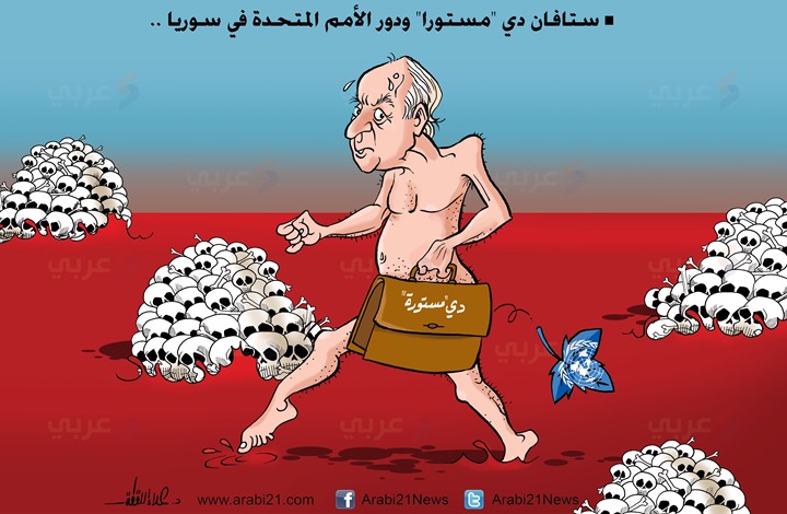 ونشر موقع “عربي 21” هذا الرسم ساخرا من الأمم المتحدة في مباحثات جنيف: