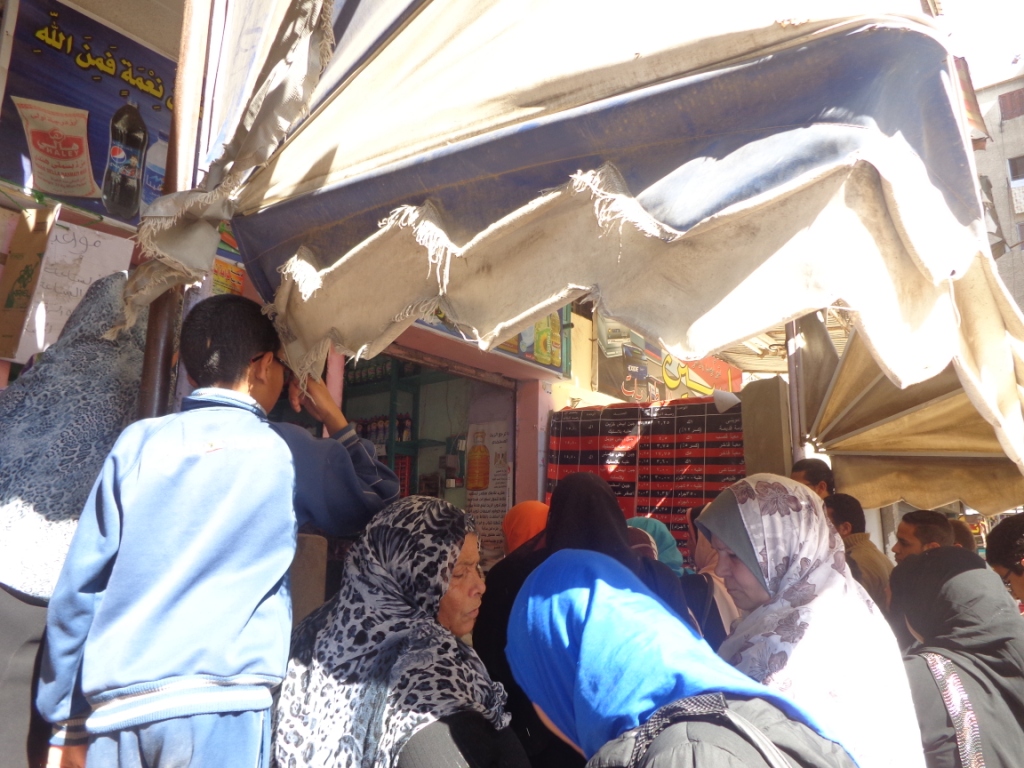 “هل الأرز متوفر؟”.. تقولها امرأة مصرية وهي تطل برأسها داخل أحد المحلات مظهرة البطاقة المخصصة لصرف المواد المدعمة.. رد عليها صاحب المحل “لا.. فقط السكر هو الموجود”.