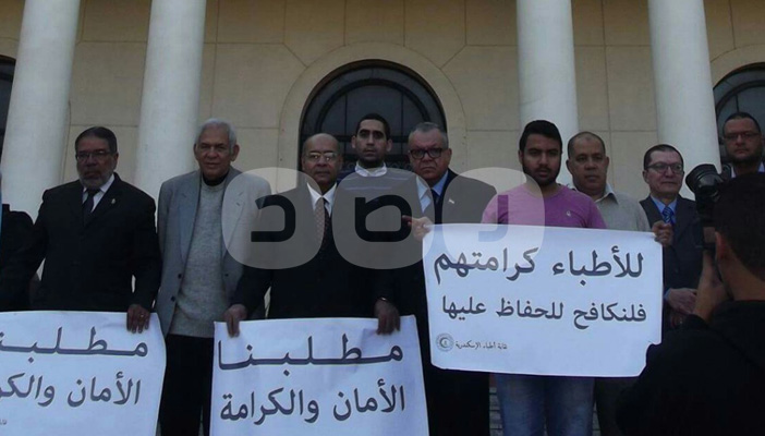 نظم أطباء محافظة الاسكندرية، اليوم السبت، وقفة احتجاجية بعدد من المستشفيات في المحافظة، تزامنًا مع الدعوة التي أعلنتها النقابة العامة للأطباء؛ للمطالبة بسرعة معاقبة أمناء الشرطة الذين اعتدوا على زملائهم في مستشفى المطرية.