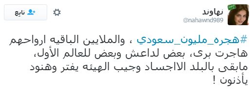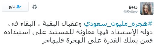 أطلق مغردون “هشتاج” يحمل اسم “هجرة مليون سعودي”، على موقع التواصل الاجتماعي “تويتر”، للتعبير عن غضبهم إزاء ارتفاع نسبة البطالة في المملكة، إلى جانب حث الشباب على ضرورة مغادرة السعودية لإيجاد فرصة عمل أفضل والعيش بحرية، بعيدًا عن التشدد، حسب بعض التغريدات.